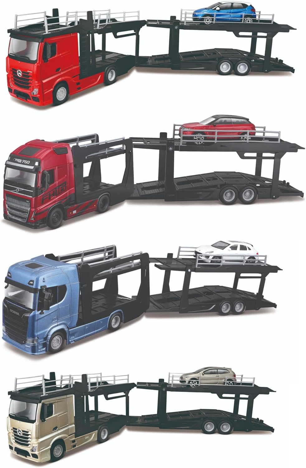 Bburago Bisarca Mercedes Actros con Auto 1:43