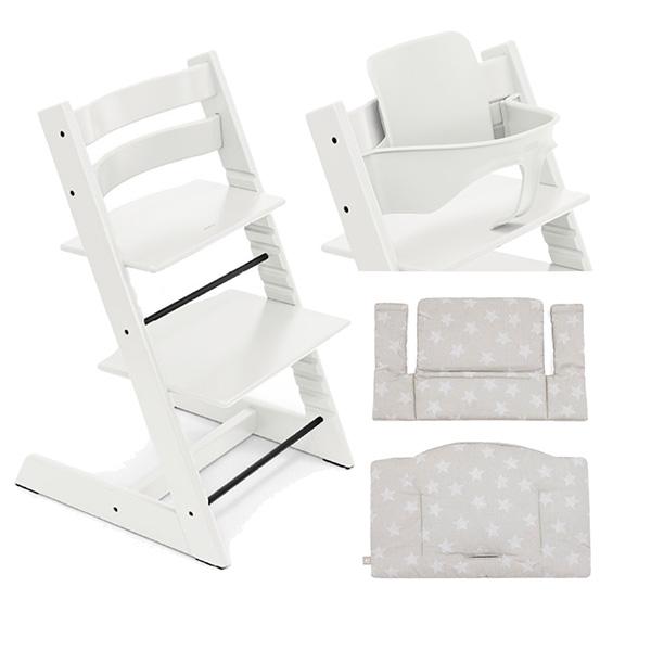 Stokke Tripp Trapp Sedia + Baby Set + Cushion White, Star Silver